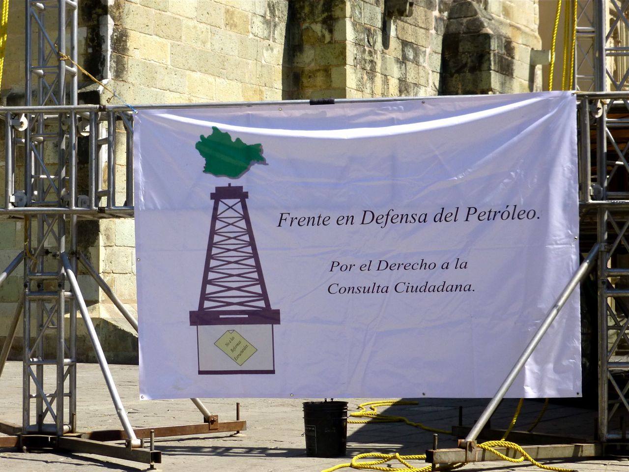 Banner, "Frente en defensa del petroleo.  Por el derecho a la consulta ciudadana."