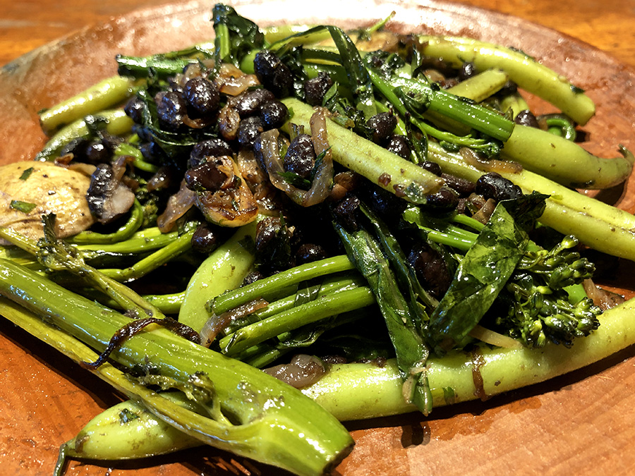 March 7, 2021 – Leftovers of chard, broccolini, potatoes, and black beans.