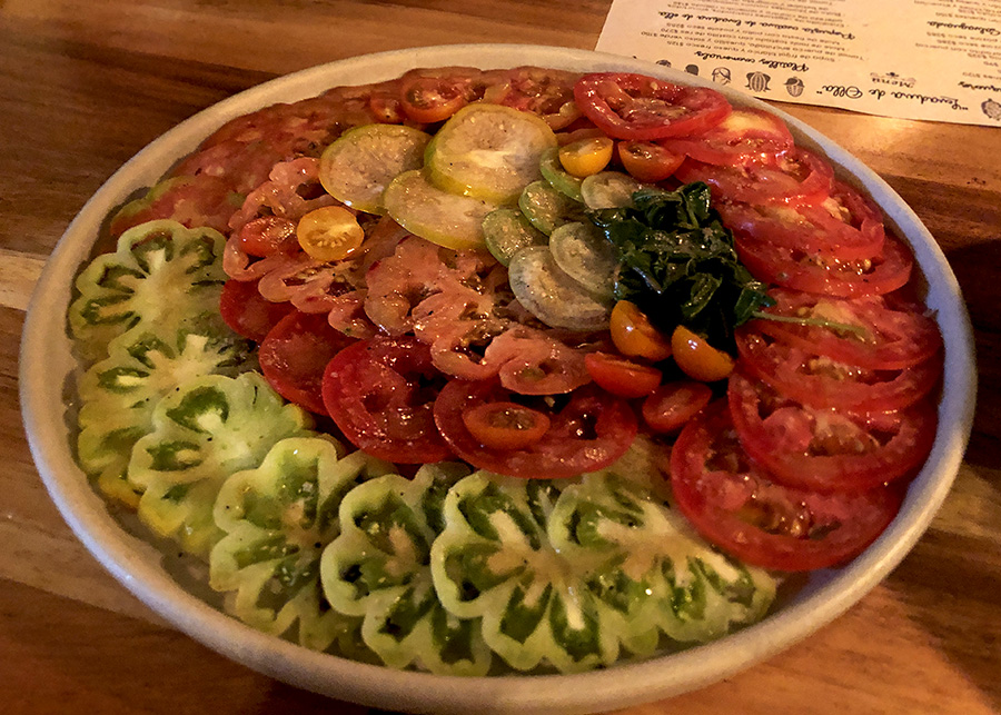 June 8, 2023 – Tomato salad at Levadura de Olla in Oaxaca city center.