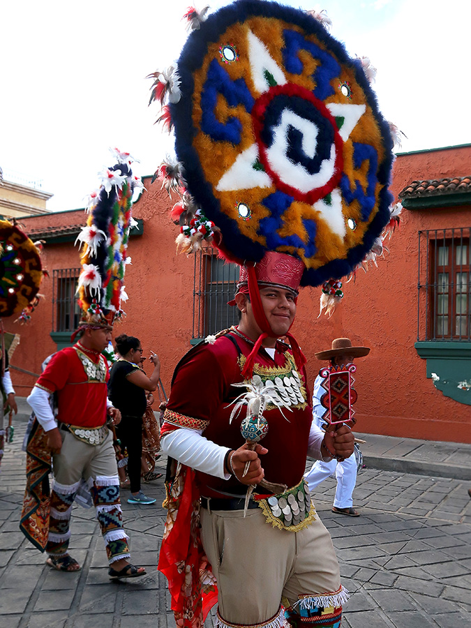 Teotitlán del Valle’s Danza de La Pluma Promesa 2016-2018 guys (and two little gals) came, saw, and conquered Oaxaca city yesterday.