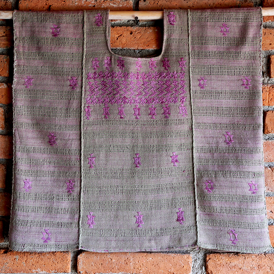 The third of my huipil purchases was another impulse buy. For several months, on Friday mornings, Kalisa and I have been making the trek up to the Pochote Xochimilco Mercado Orgánico y Artesanal in Colonia Reforma to stock up on fabulous fresh produce from the Sierra Norte, the occasional duck and chicken, cheeses, and fun shaped clay garden pots. However, the vendor of the plants and pots also sells a selection of huipiles from the Papaloapan region of Oaxaca and I fell in love with this Chinanteco one.