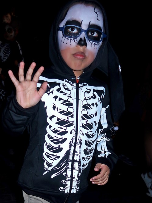 Tonight, the living began welcoming the dead with a Gran Comparsa through the streets of Oaxaca, beginning at Parque Juárez El Llano and ending at the Plaza de la Danza — the latter, almost on my doorstep! Visitors and Oaxaqueños, young and old, lined the parade route in anticipation.
