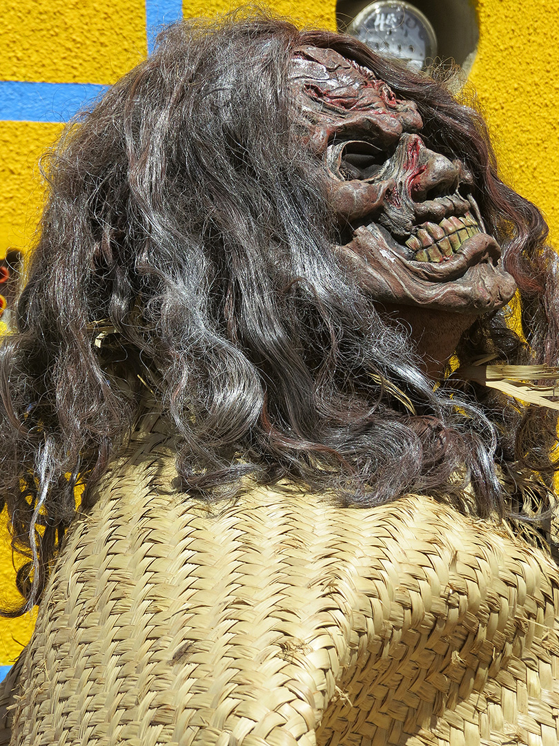 Masks, all the better to hide one’s identity when making fun of the powers that be, are an international carnaval tradition. Thus, in this village, known for its fantastically painted wood carvings, wooden masks play a big role in the celebration — including several by our friend Jesus Sosa Calvo and his family at Matlacihua Arte.