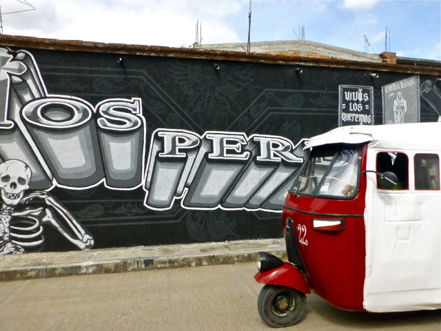 We were about to head to lunch, when we were waylaid by Benito’s inquiry if we knew about and would like to see the Día de Muertos (Day of the Dead) murals decorating the walls of Calle Coquiza — a street that connects the church with the municipal cemetery. Of course we responded that we would love to see them! If you are in Zaachila, they are worth checking out. You can see more of the murals on my blog post, Muertos murals in Zaachila.