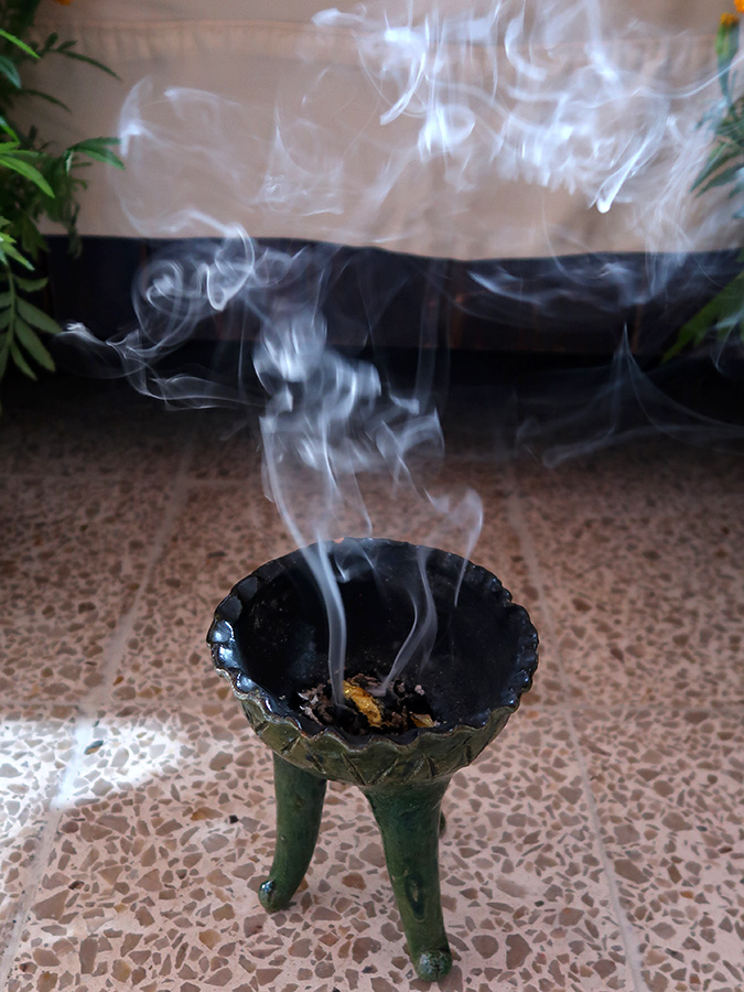 The sweet smell of copal incense and its smoke help guide my loved ones to the feast I have prepared. And, there is water to quench their thirst, as they travel between worlds, not to mention mezcal and cervesa (beer).