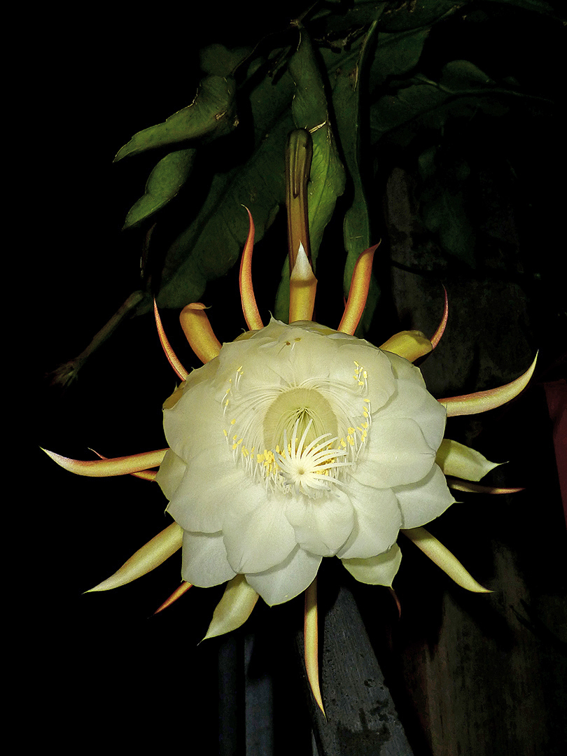 This morning as dawn broke, a pitahaya bloomed in Oaxaca. Tipped off by my neighbor, I ran upstairs with my camera — before coffee, no less!