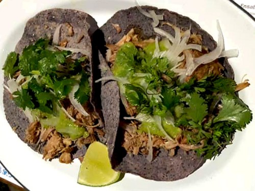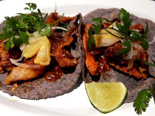 Sourcing corn from Mexico and nixtamalizing it on-site, the blue corn tortillas, handmade and hot off the comal, brought me right back to Oaxaca.