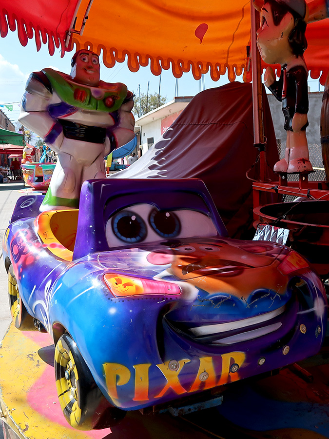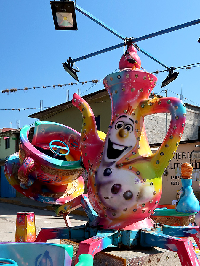 Colorful but creaky carnival rides with familiar figures for the kiddos always seem to be a part of fairs and festivals in Oaxaca.