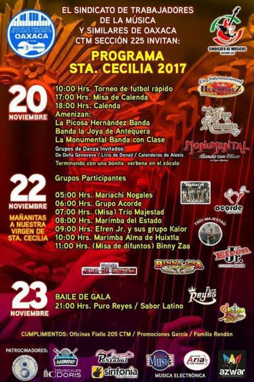 To what, or who, did I owe this timely interruption? Saint Cecilia! November 22 is her feast day and, at least in Mexico, festivals to the saints aren’t just one day events — hence yesterday’s mass at Iglesia de San Felipe Neri, followed by the calenda.