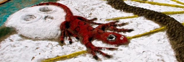 For more of these sand paintings, check out the recent post by blogger buddy Chris. By the way, the feast days for these last three señoras are coming up in December. First on the calendar is Juquila on December 8, then comes Guadalupe on December 12, and, finally, Oaxaca’s patron saint, Soledad on December 18. There will be special masses, processions, and rockets. December is a noisy month!