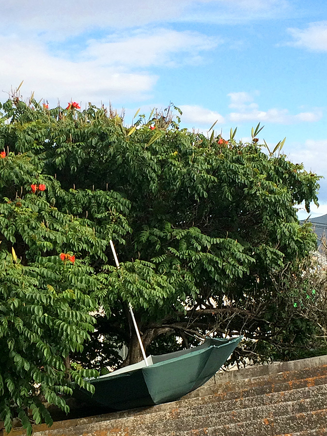 Then, late this afternoon the winds came, the umbrella took flight, and disappeared