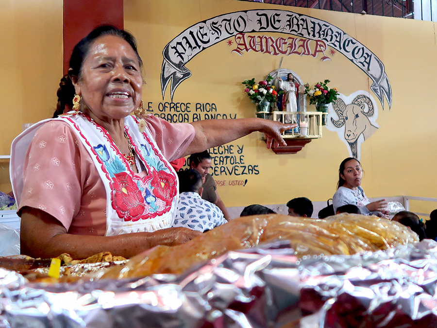 The church, Templo de la Virgen de la Asunción, was teeming with an overflow crowd of the faithful listening to mass being said from the side chapel of El Señor de Tlacolula. Legend has it that when this sculpture of Jesus, being brought south by muleteers in the sixteenth century, arrived in Tlacolula for a rest stop, overnight it gained so much weight that in the morning it could no longer be lifted. A miracle! Thus it was decided a chapel should be built to house the sculpture right on the spot.