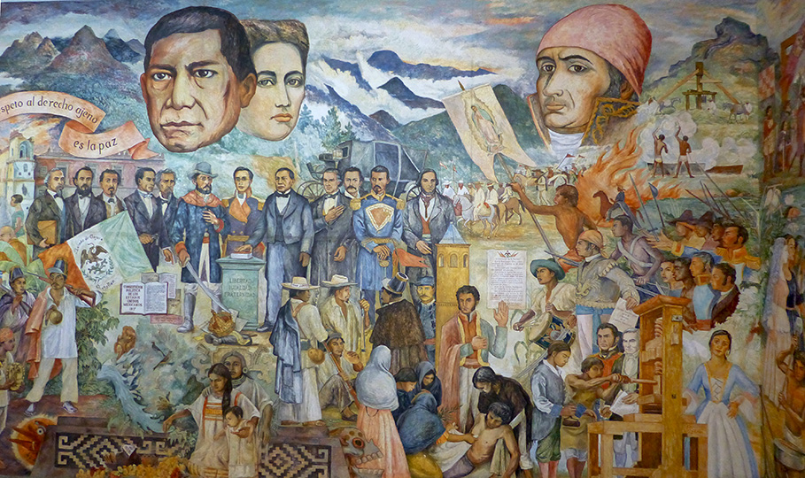 Our first stop on day five of B’s Week in Oaxaca was the Palacio de Gobierno to see the magnificent Mural of Oaxaca history. Ooops! I had forgotten that the Government Palace was now closed to the public. However, a polite appeal to see the mural, addressed to one of the guards by a couple of tourists (okay, one tourist and one resident), resulted in the guard receiving permission from a superior to let us in. We were instructed, mural only! We obeyed, walking only half-way up the grand staircase to take in the entire work of art. I love this mural by Arturo García Bustos and hope the palacio will again be opened to the public.