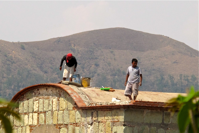 Late this afternoon, they were still up there as thunder began rumbling and rain began falling. Finally, they packed up shop… and I was relieved!
