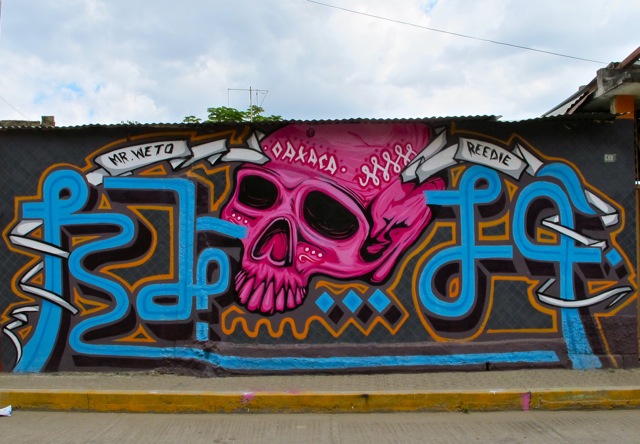 Thus, it should come as no surprise that Day of the Dead celebrations and cemeteries differ, often dramatically, from village to village. And so, from the whitewashed graves of Santiago Apóstol and the candlelight of Santa María Atzompa (today’s earlier post), we came to the carved wooden crosses in the Panteón Municipal of the Villa de Zaachila.